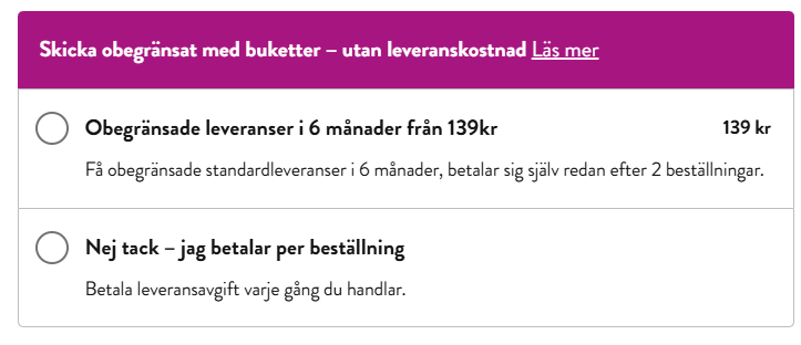 Om du är korrekt inloggad på ditt konto kommer leveransalternativen att listas nedan. Detta säkerställer att du kan utnyttja dina kontoprivilegier på bästa sätt och välja den fraktmetod som passar dina behov bäst